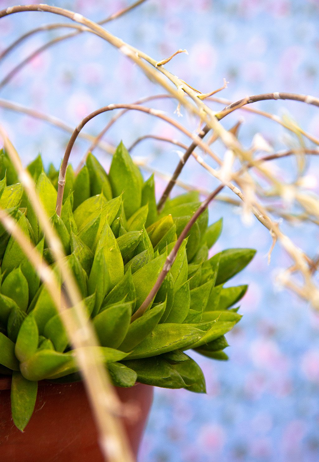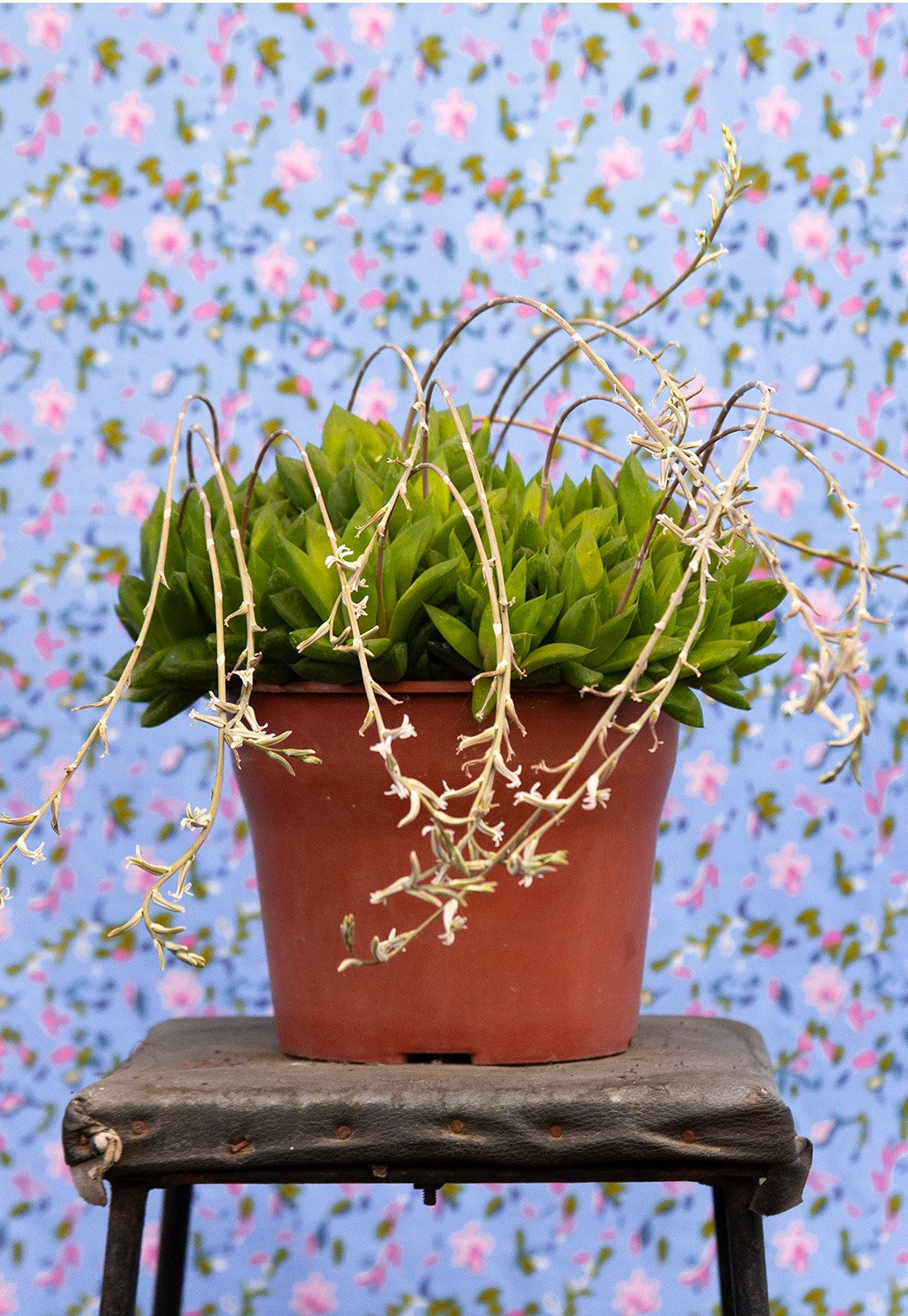 Prefiere luz brillante pero indirecta o sombra parcial. Riego moderado